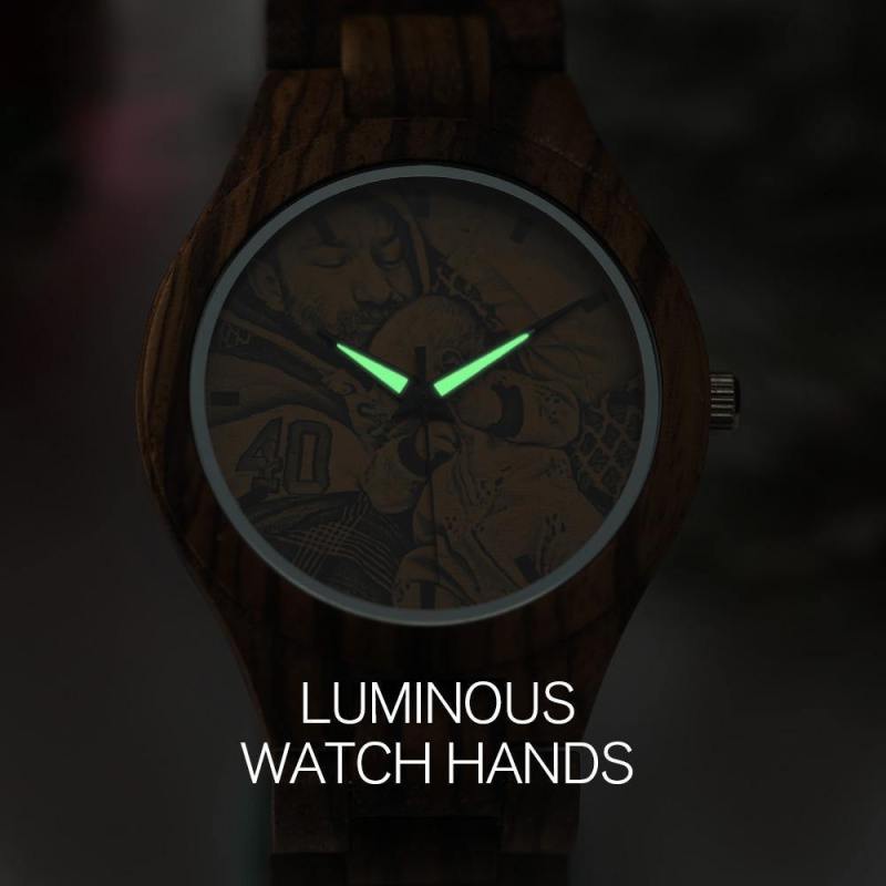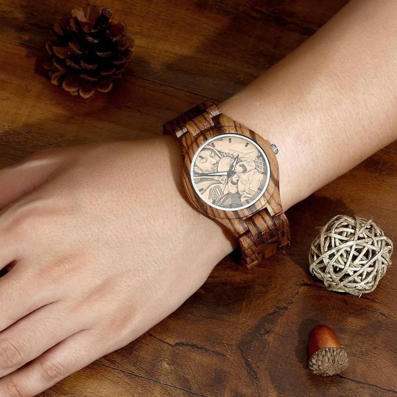 Personalized Men's Engraved Wooden Photo Watch Wooden Strap 45mm