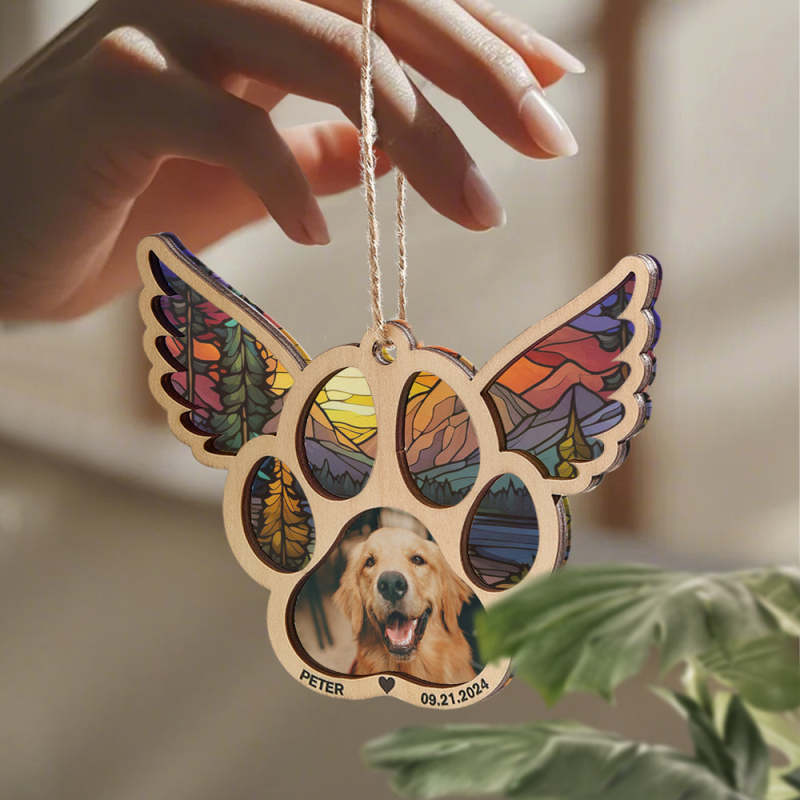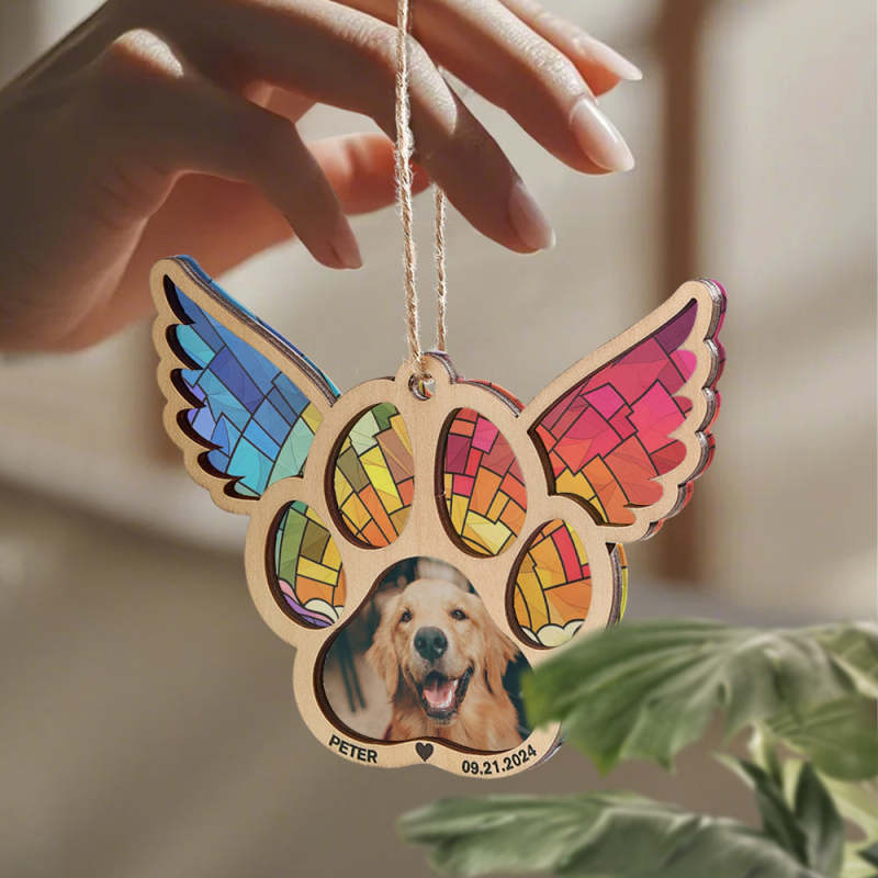 Personalized Pet Suncatcher Ornament with Photo Paw Print Ornament Memorial Gift for Pet Lovers