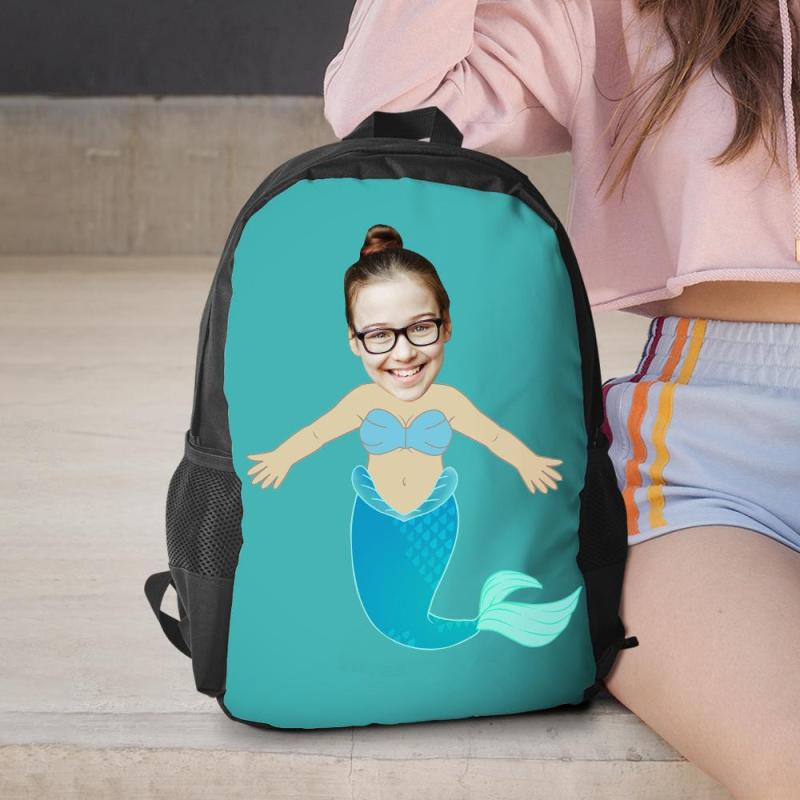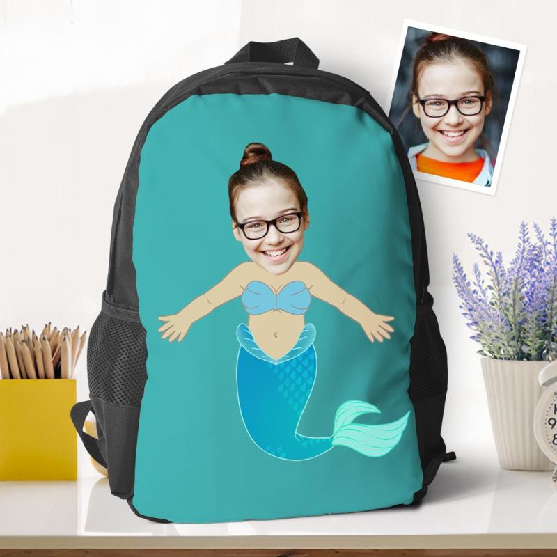 Personalized Photo Backpacks Minime Bookbags Back To School Gifts For Girls Blue Mermaid Gifts
