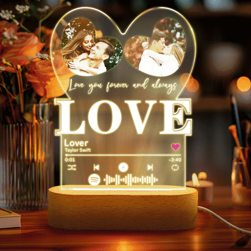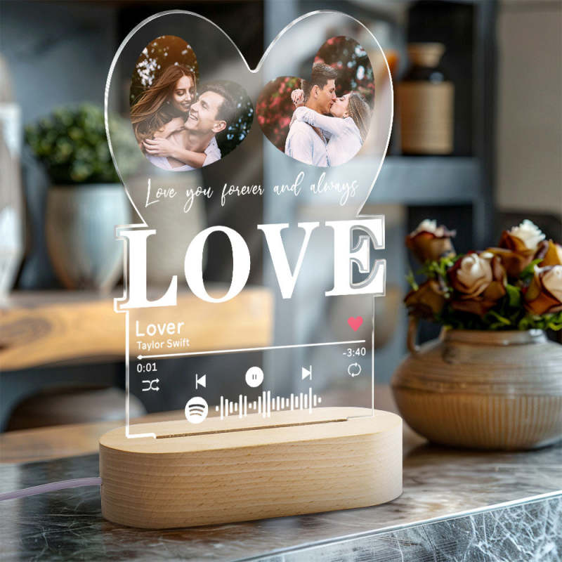Personalized Romantic Love Heart Acrylic Night Light Gift for Couple Home Decor