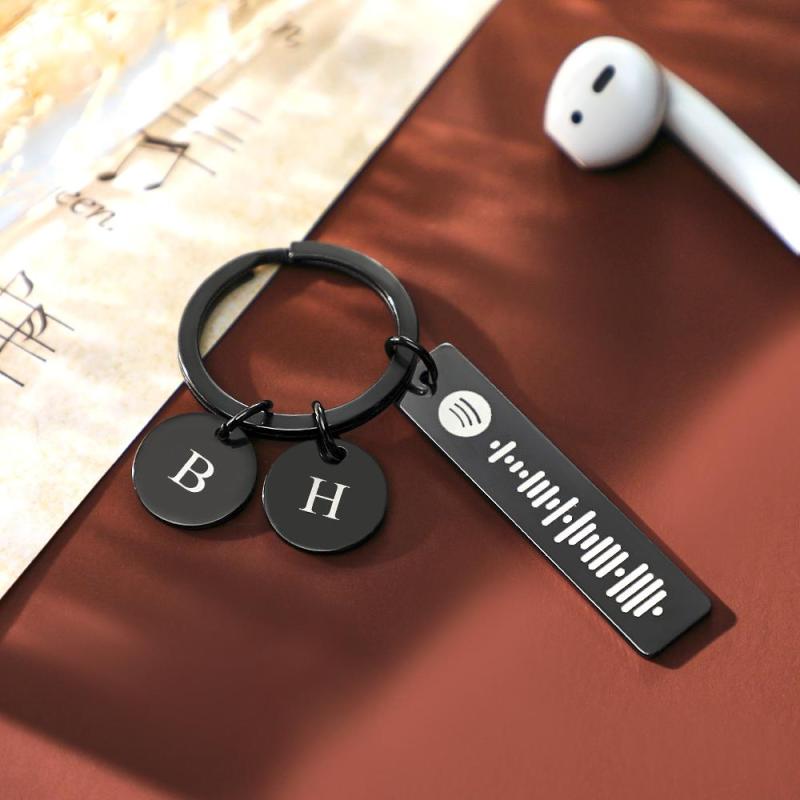 Scannable Spotify Code Keychain With Engraved Circle Pendant Custom Music Song Keychain Gift