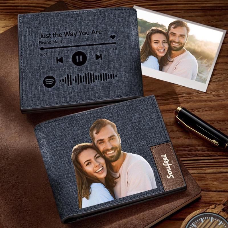 Scannable Spotify Code Wallet Photo Engraved Wallet Gifts for Boyfriend/Husband