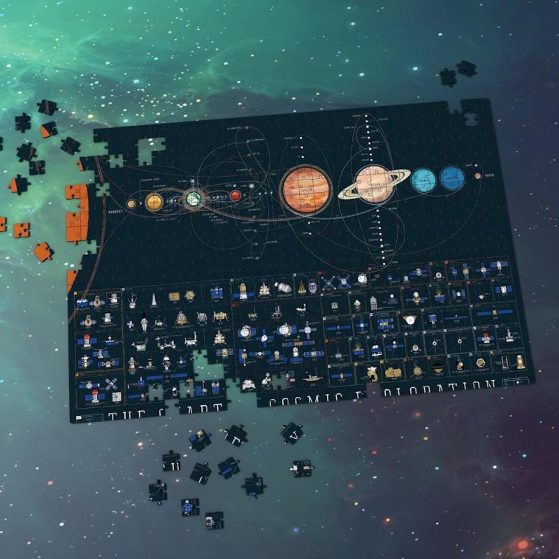 Space Jigsaw Puzzle 1000 Pieces For Adults And Kids - Eight Planets And Mechanical Parts of Space Probe