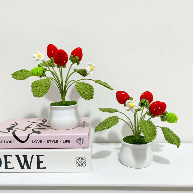 Strawberry Orange Potted Plants Completed Hand Woven Knitted Potted Plants Gift for Handicraft Lover