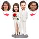 Valentines Gift Couple in White Custom Bobblehead with Engraved Text