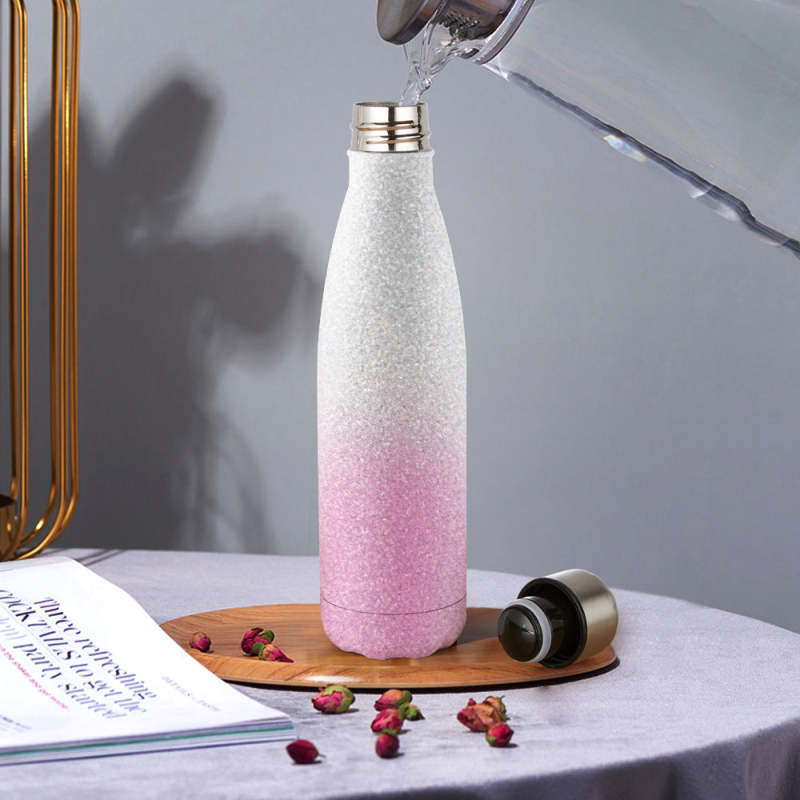 Water Bottle Glitter Series Vacuum Insulated Stainless Steel Gym Bottle 500ml Chilly Flask Shimmer Silver-Salmon