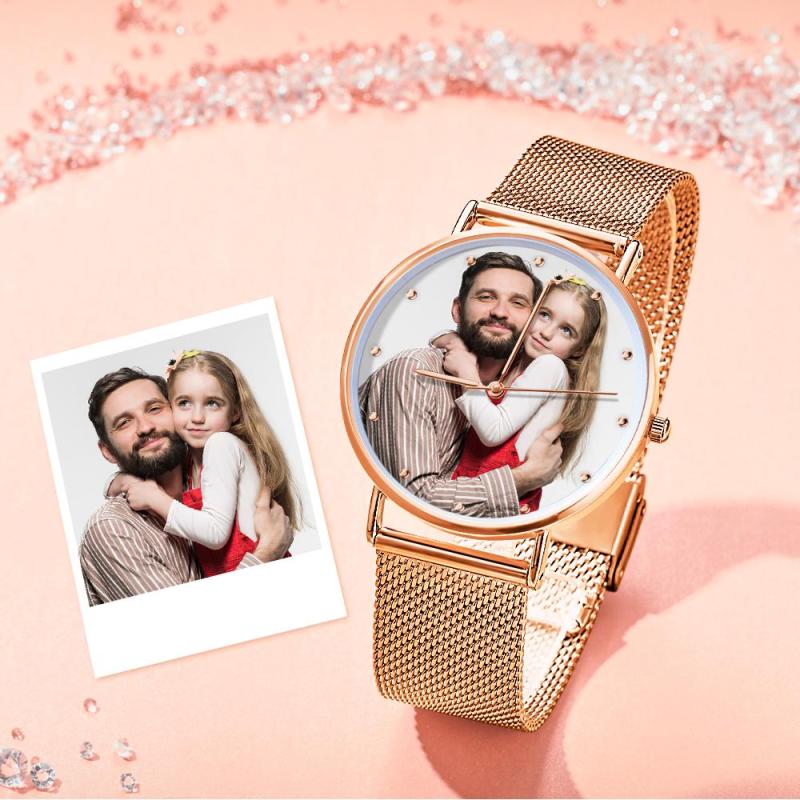 Custom Photo Watch Engraved Alloy Bracelet Gifts For Dad