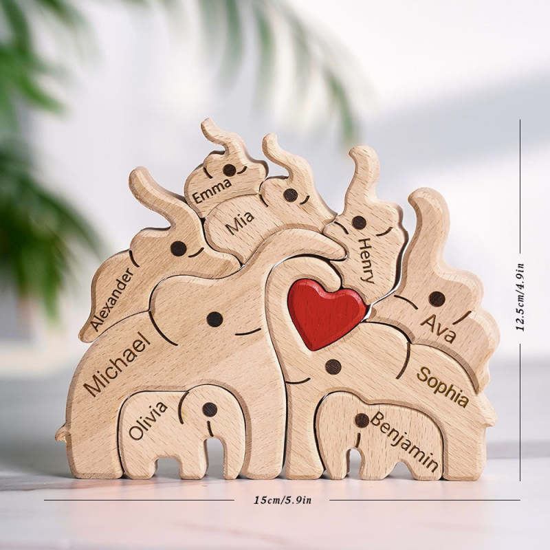 Wooden Family Elephant Puzzle Custom Names Home Decor House Warming Gifts